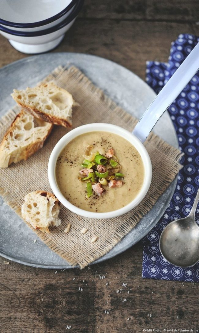 Ingrédients (4 personnes) 1 petite pomme de terre 1 bouillon cube bœuf dégraissé 60g de Maroilles 20g de pain d’épices 20g de beurre demi sel 2 endives 1 belle échalote Préparation Étape 1 : Faire fondre le beurre dans une cocotte en fonte. Y faire fondre l’échalote émincée. Étape 2 : Pendant ce temps, émincer les endives.…
